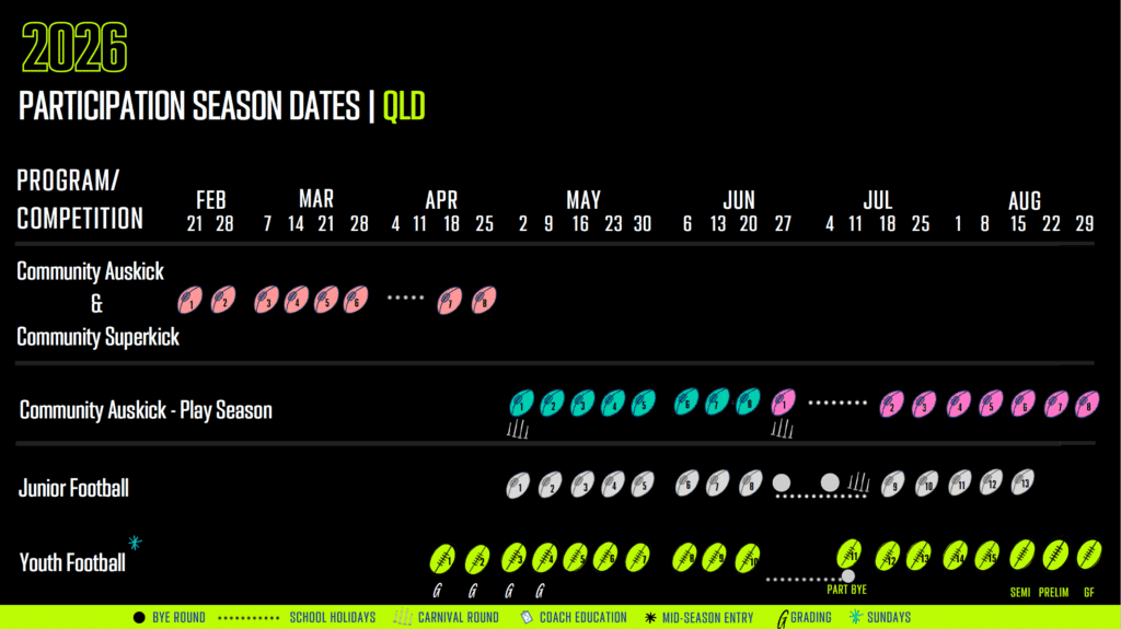 Our youth teams compete in the AFL Queensland competition, taking on clubs from across the region in well-structured and development-focused leagues. With professional coaching, strong club support, and a welcoming community, Kedron Lions is the perfect place to continue your AFL journey.