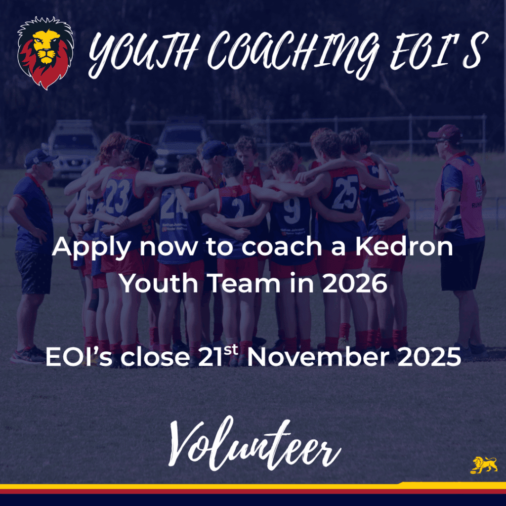We’re looking ahead to the 2026 season and are eager to secure Youth Coaches and Managers as we begin planning for another successful year at Kedron Lions.